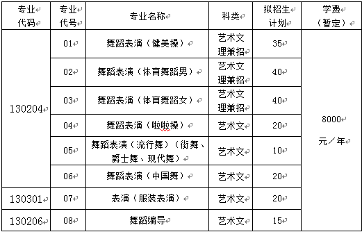 培养目标:本专业旨在培养具有一定教学水平、训练水平和科研水平,集体育与艺术、教学与表演、竞技与健身于一体的,了解相关学科的知识,具备良好的专业素养、创新思维和适应能力,能在学校、俱乐部、社区健身指导中心、专业表演团体及文体系统从事舞蹈表演及教学的应用型专门人才。
