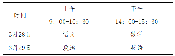 1.考试科目:语文、数学、政治、英语,每科满分为150分,四科满分为600分。